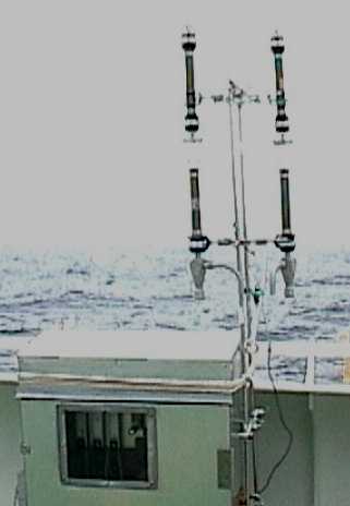 ち込み機材である大気濃縮装置、気体抽出装置を用いて船上にて行う。現在、装
