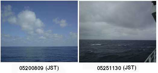 ここでは、下の写真に示す2つのケースについて結果を報告する。左は対流性の積雲の場合で、右は雨の降りそうな層雲である。
