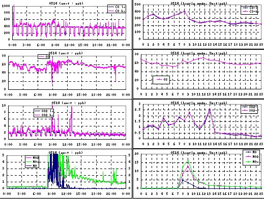 ●オゾンは汚染大気中にあるから光化学反応の影響で日中増加する傾向にある。