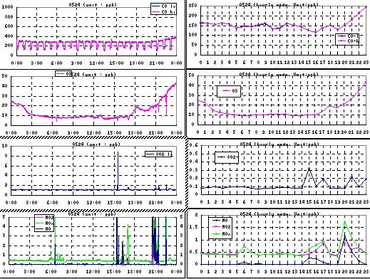 ●船の排気の影響をうけているところがいくつかあり、NOxなどにスパイク多数。