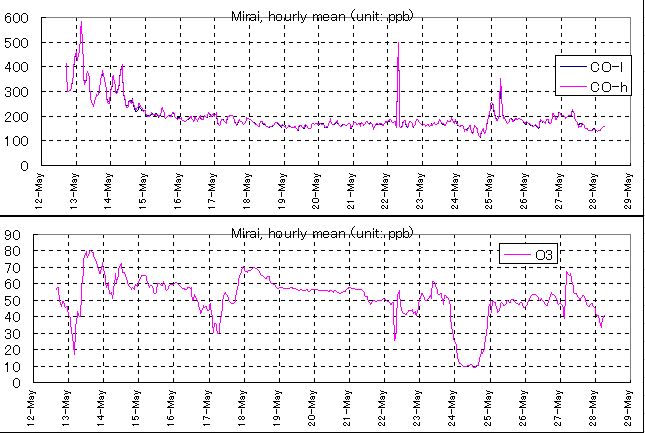 ●17日前半のオゾン、CO減少は清浄な海洋性大気の影響を受けているからでしょう